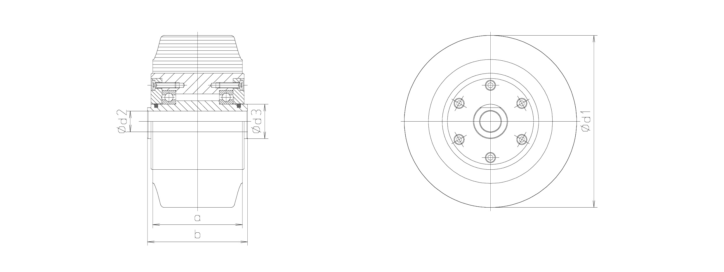 GrößeabØ d1Ø d2Ø d3passende Aufhängungen der BaureiheTragkraft (kN)Gew.(kg)